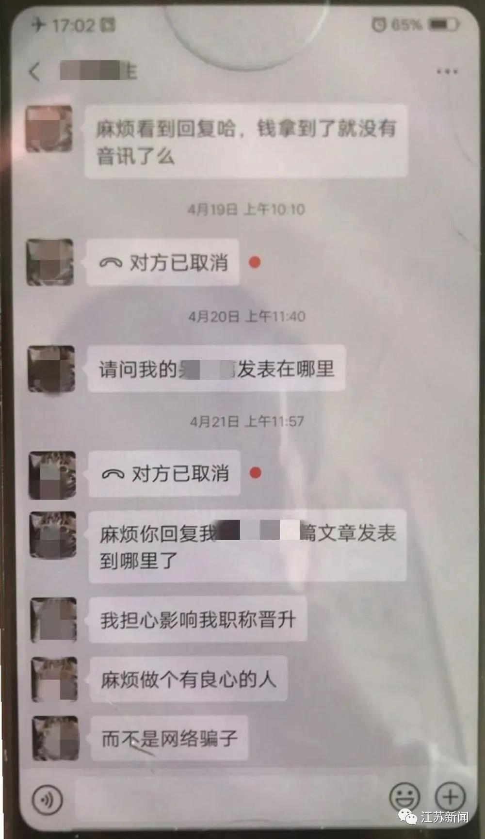 可這次轉(zhuǎn)賬后,王女士就再也沒聯(lián)系上對(duì)方,本來(lái)說好2019年底在某期刊刊發(fā)的論文也一直沒有刊發(fā)。意識(shí)到被騙后,今年4月底,王女士向公安機(jī)關(guān)報(bào)警。