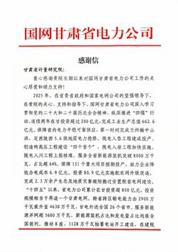 此次評價(jià)工作的順利完成,是甘肅省計(jì)量研究院服務(wù)地方經(jīng)濟(jì)發(fā)展、履行法定計(jì)量職責(zé)的生動(dòng)體現(xiàn),也彰顯了本院在電能計(jì)量領(lǐng)域的專業(yè)能力與責(zé)任擔(dān)當(dāng)。收到感謝信后,全院干部職工備受鼓舞。院相關(guān)負(fù)責(zé)人表示,這份贊譽(yù)既是肯定更是責(zé)任,未來,甘肅省計(jì)量研究院將繼續(xù)秉持 “精準(zhǔn)計(jì)量、服務(wù)發(fā)展” 的宗旨,持續(xù)深化與國網(wǎng)甘肅省電力公司的戰(zhàn)略合作,在智能電網(wǎng)計(jì)量、新能源計(jì)量監(jiān)測等前沿領(lǐng)域加大技術(shù)研發(fā)力度,不斷提升服務(wù)效能與專業(yè)水平,以更優(yōu)質(zhì)的計(jì)量技術(shù)服務(wù)護(hù)航區(qū)域能源安全,為甘肅經(jīng)濟(jì)社會(huì)高質(zhì)量發(fā)展注入計(jì)量力量。