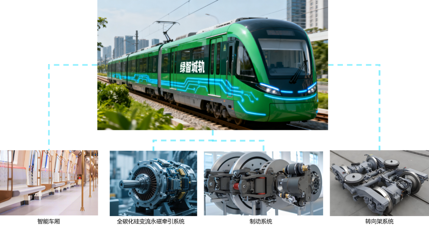該綠智城軌車輛集成軸箱內(nèi)置式架懸直驅(qū)轉(zhuǎn)向架、全碳化硅變流永磁牽引、電機械制動等38項前沿技術(shù),具備安全可靠、智慧先進、綠色節(jié)能、舒適便捷等特質(zhì),是我國低碳環(huán)保型城軌裝備的標桿產(chǎn)品,對推動軌道交通自主創(chuàng)新與產(chǎn)業(yè)規(guī)范化發(fā)展具有重要示范意義。