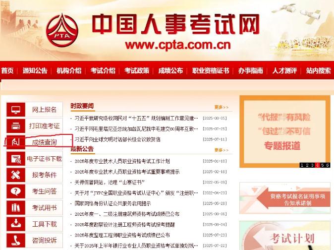 2025年注冊(cè)計(jì)量師職業(yè)資格考試成績(jī)由中國(guó)人事考試網(wǎng)發(fā)布,查分通道開(kāi)通后可登錄http://www.cpta.com.cn/查詢(xún)。